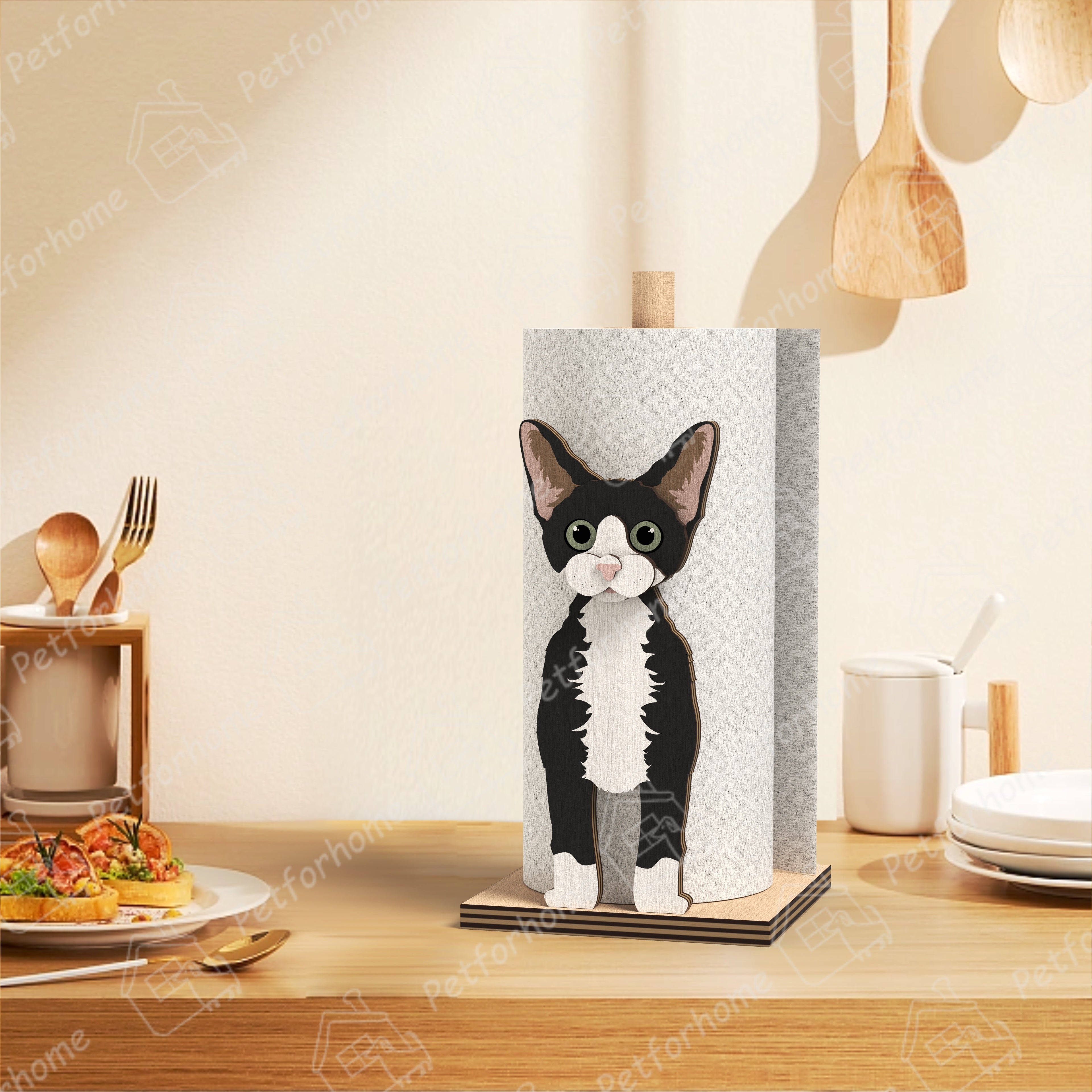 Unser Papierhandtuchhalter verfügt über einzigartige, naturgetreue Tiermotive und anpassbare Namensschilder, die Funktionalität mit Stil verbinden und somit eine gute Wahl für Haustierbesitzer darstellen. Dieser Papierhandtuchhalter ist stilvoll und funktional und verleiht Ihrem Zuhause eine persönliche und dekorative Note.